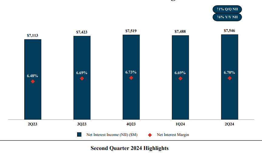The company’s NII for the quarter was just over $7.5 billion, with small margin improvements.