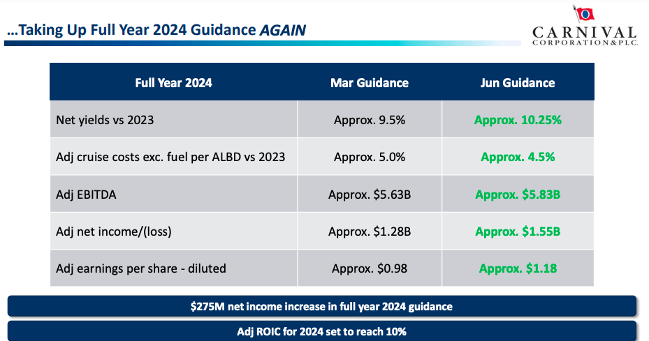 • Carnival Corporation’s better-than-expected Q2 2024 results and upgraded full-year guidance resulted in a share price rally in recent months.