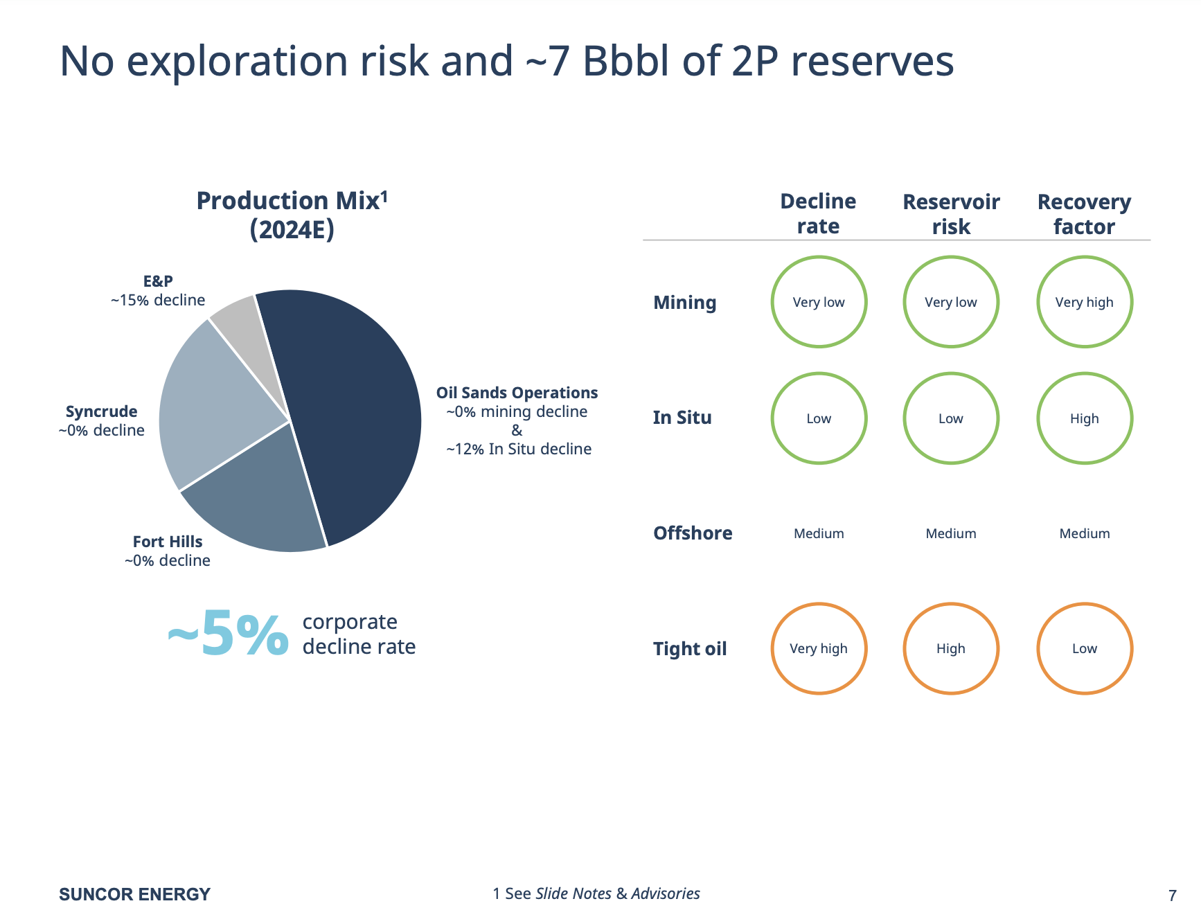 Suncor, for example, has a reserve life of more than 7 billion barrels of oil. This translates to more than 25 years of production without any additional discoveries.