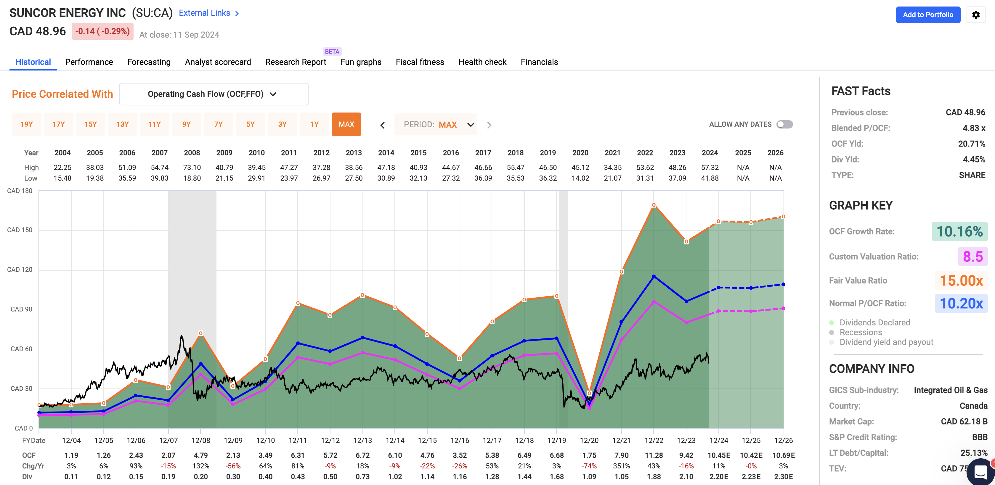 Using the FactSet data in the chart below, Suncor trades at a blended P/OCF (operating cash flow) ratio of 4.8x, which is frankly ridiculous, as the company trades at the valuation of a beaten-down coal producer.