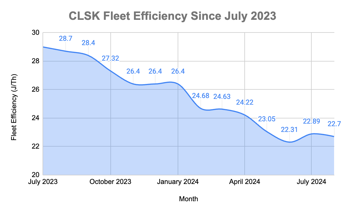 Fig 4. CLSK’s Historical Fleet Efficiency Since July 2023 (Author, CLSK)