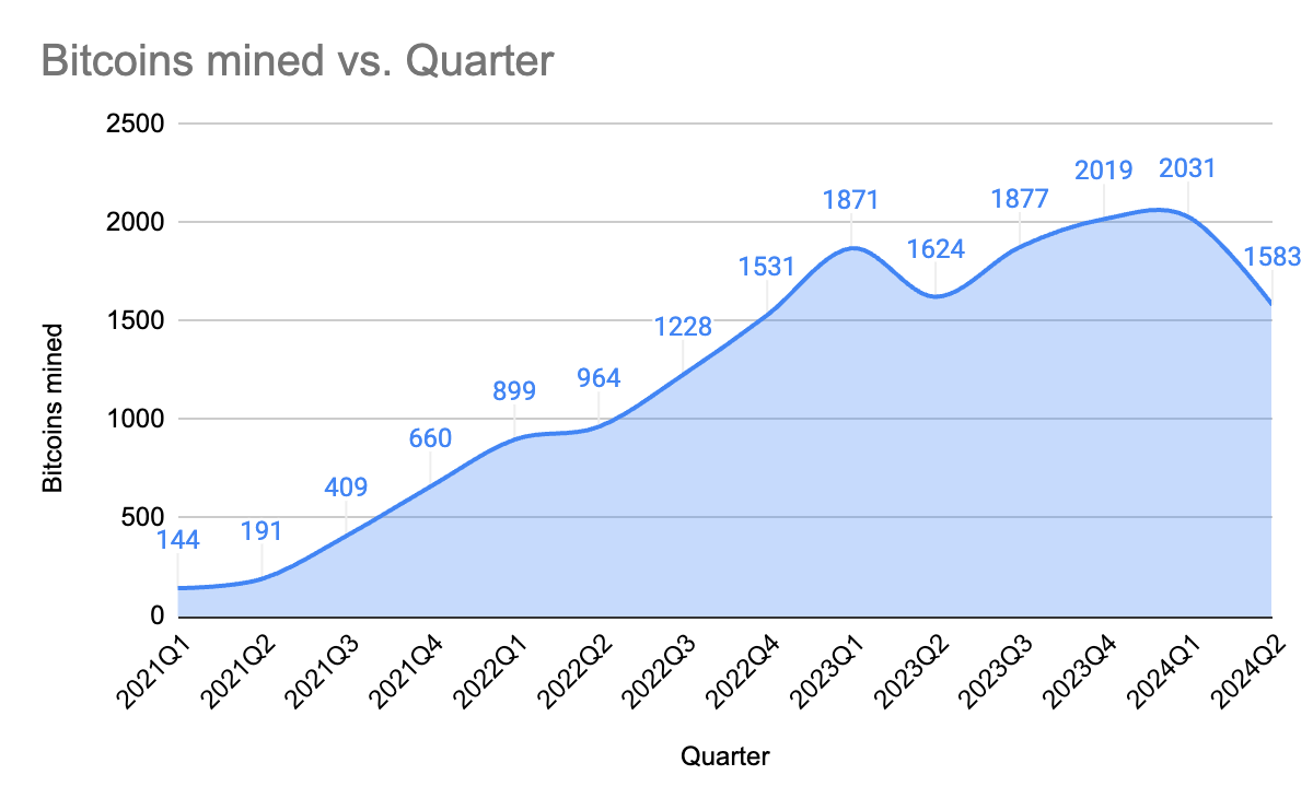 Fig 2. CLSK Historical Quarterly Bitcoin Production (Author)