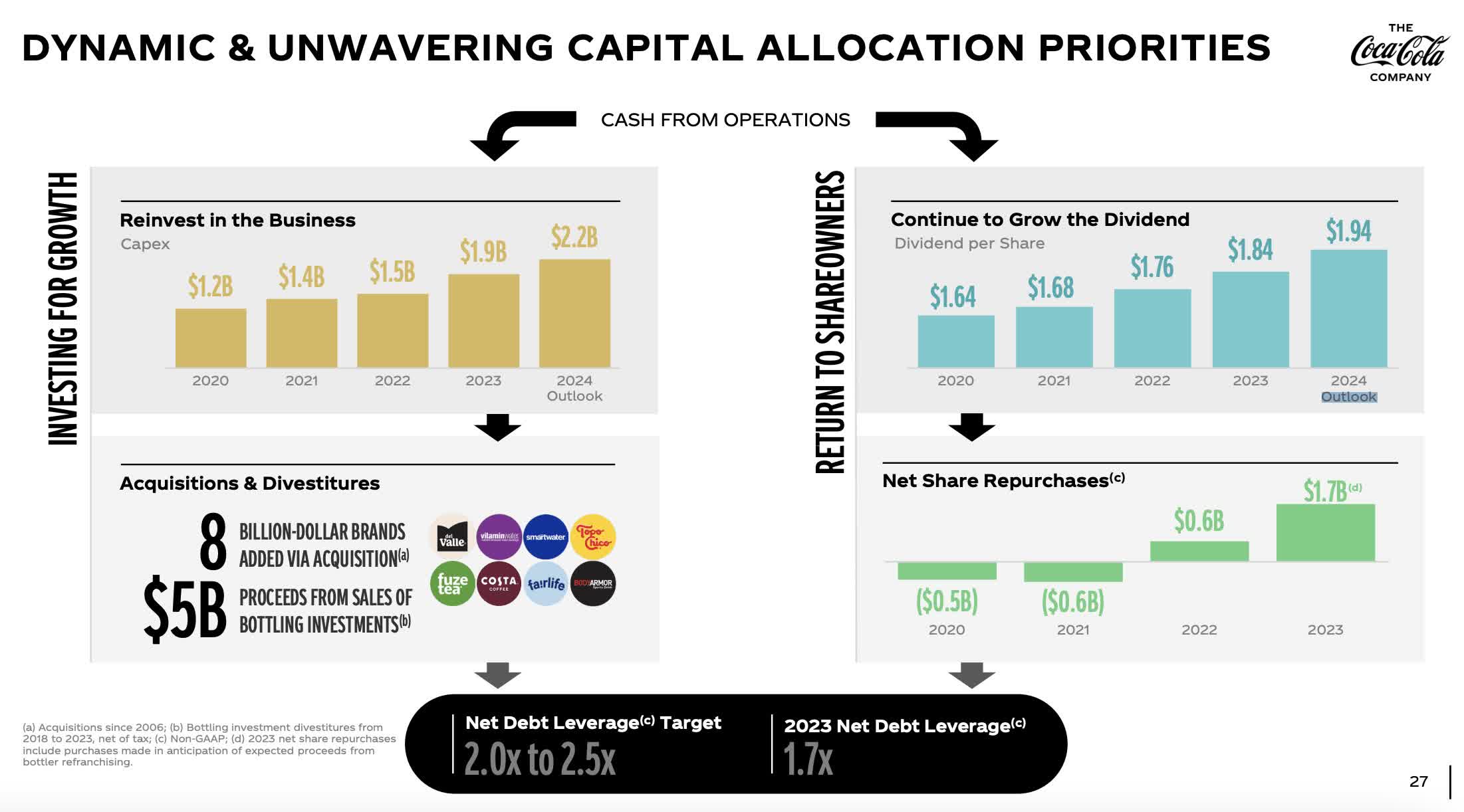 In terms of free cash flow and capital allocation, Coca-Cola also highlights as one of its top priorities how it reinvests back into its business.