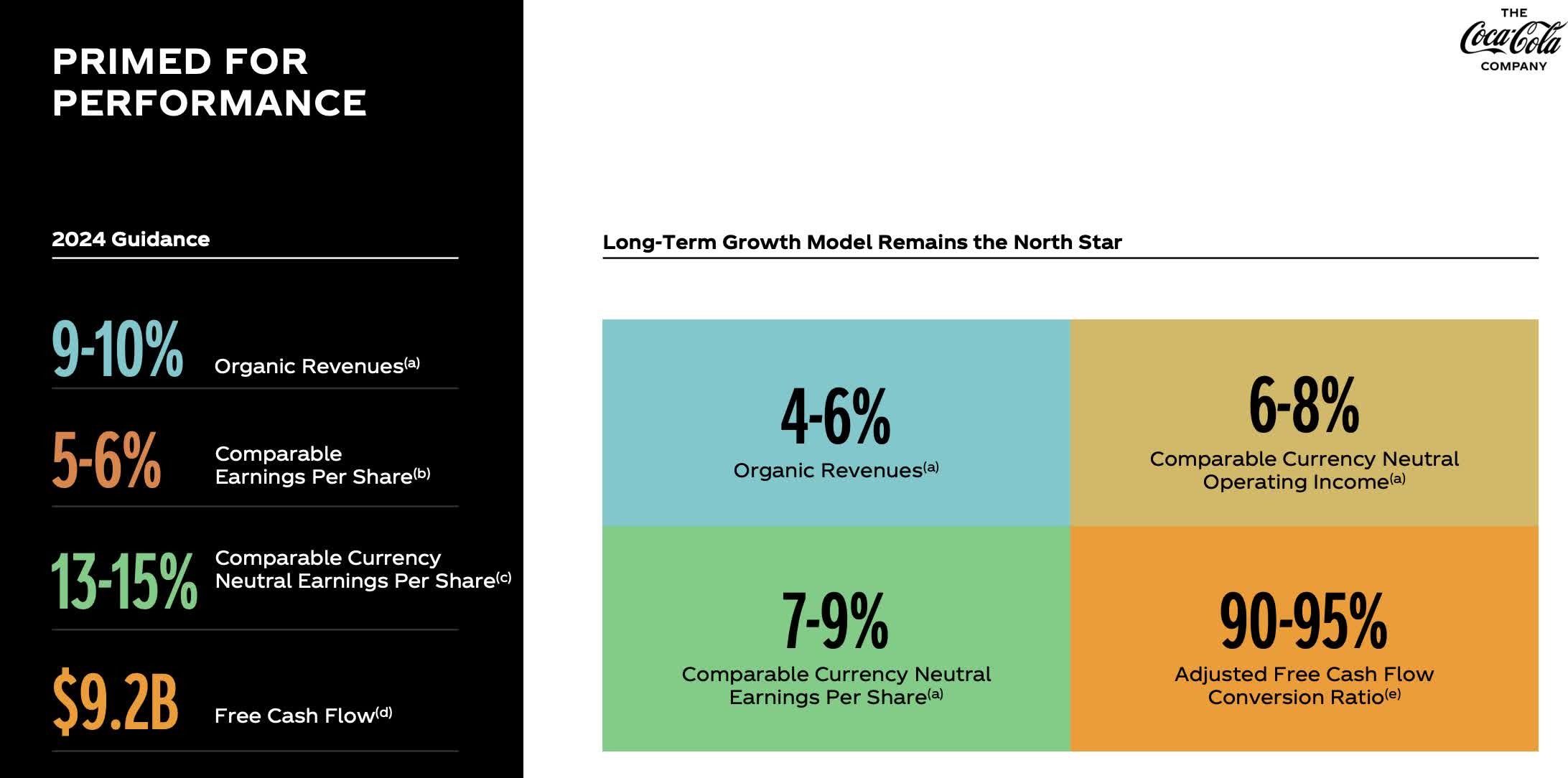 Coca-Cola also provided through its guidance that organic revenues should come in between 9-10%, which was somewhat above market projections. Coca also expects comparable earnings per share to grow by about 5-6%, comparable currency-neutral earnings per share by 13-15%, and free cash flow at $9.2 billion. If we go back to 2023, we can see that free cash flow was about $9.74 billion. While they’re projecting a slight decline, their projected free cash flow should still cover their dividend payments in a sustainable manner. So far, so good.