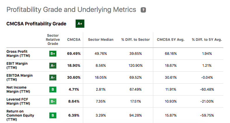 CMCSA’s remarkable profitability is evident in its strong financial performance and effective management, as demonstrated by consistently robust operating margins that showcase cost control and revenue maximization. The company stands out among its peers in the sector, surpassing them in key profitability metrics such as gross margins, EBIT margins, EBITDA margins, net income margin, FCF margin, and return on equity. This superiority in profitability is of utmost importance as it signifies superior financial performance, enabling reinvestment in growth opportunities and ensuring long-term sustainability and competitiveness in the market.