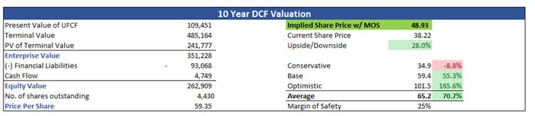• A simple DCF model of the company with conservative estimates still suggests the company is trading at a discount.