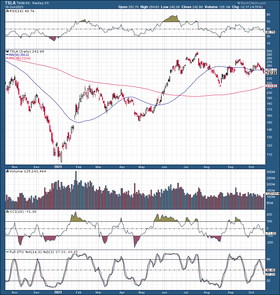 We can implement the highly effective wheel options strategy with Tesla. We can sell/create cash-secured put options, selling the 11/17/23 $220 puts for $20, earning a 10% premium, earning the possibility to purchase Tesla shares in our $220-200 buy-zone. Also, I am not worried about Tesla in the intermediate and long term, as its stock price should go much higher.