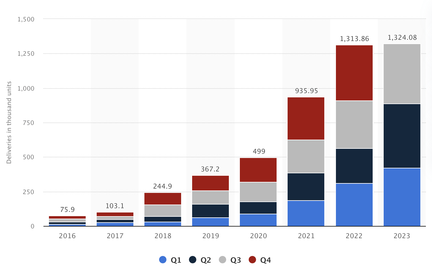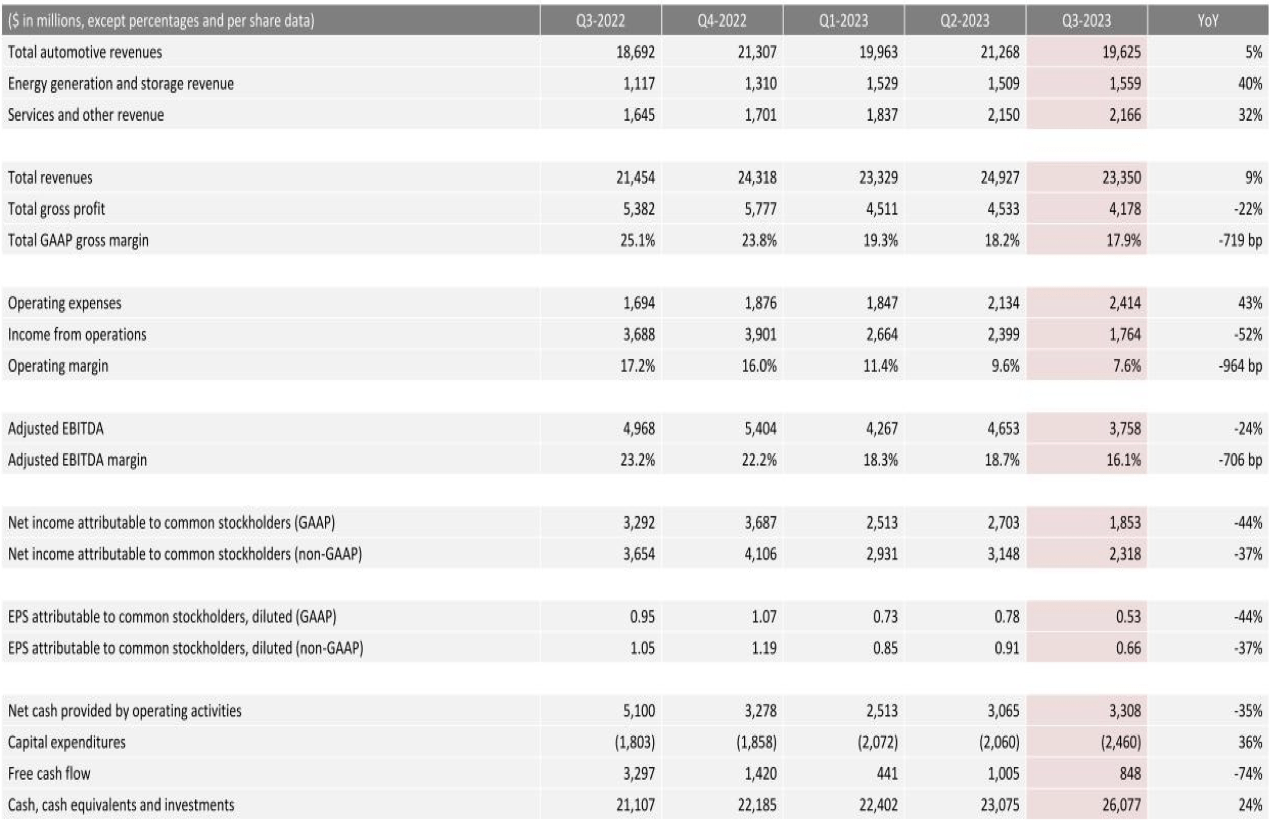 Tesla recently reported Q3 non-GAAP EPS of $0.66, missing the consensus estimate by seven cents. Additionally, Tesla reported $23.35B in revenues (+9% YoY), missing the consensus mark by $790 million. Tesla reported a Capex of $2.46B, a 19% rise over the same time last year.