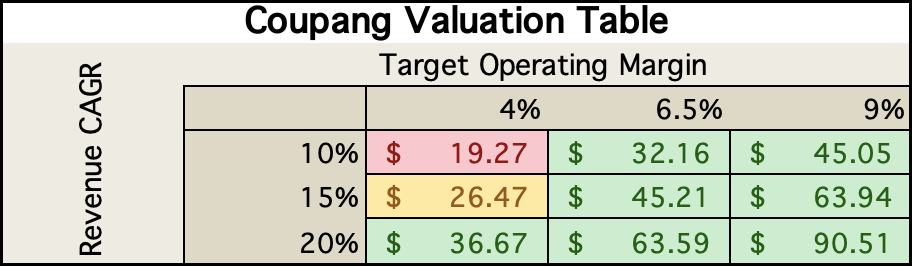 In my view, all three examples discussed above demonstrate a clear focus on the company’s core values, favoring long-term decision-making over short-term gains and investor-pleasing. In my experience, this type of evidence of consistent, solid business decision-making is rare, and I am inclined to pay a premium for CPNG stock due to the confidence and certainty provided by the management.