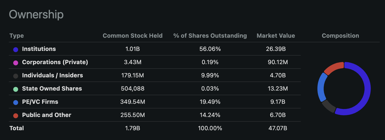 The company ownership includes a c.10% stake by individual insiders, 9.75% of which is owned by the founder and CEO of Coupang, Bom Suk Kim.