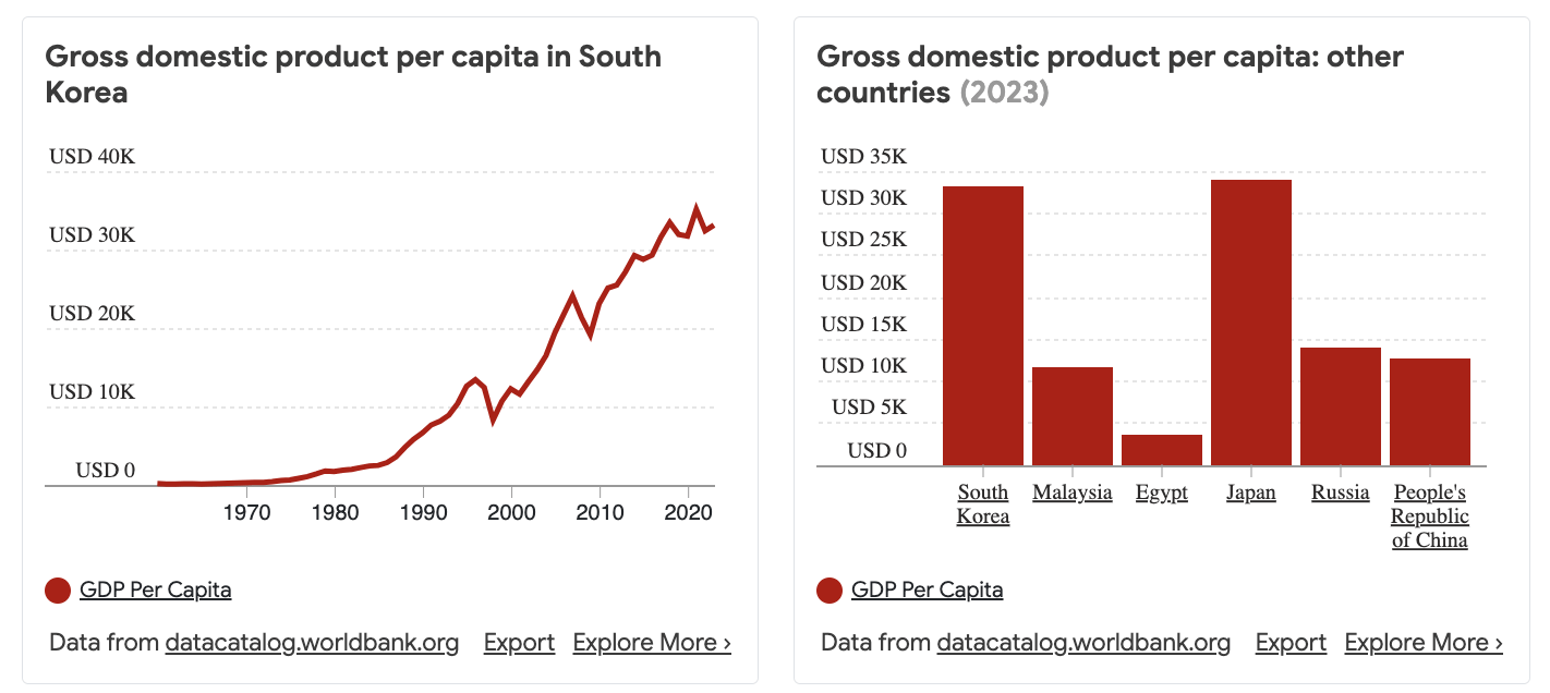 South Korea is a thriving economy, driven by innovation, advanced infrastructure, and a tech-savvy 52 million population. With a GDP per capita exceeding $30,000 in 2023, the nation has transformed from a low-income country in the 1960s to a global economic powerhouse.