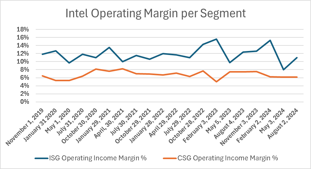 Dell’s ISG segment’s operating margin declined in recent quarters, but the rebound is encouraging. Margin movement suggests initial ramp-up costs weighing on profitability in Q1, with incremental economies of scale following soon after in Q2 2024 (three months ended August 3, 2024).