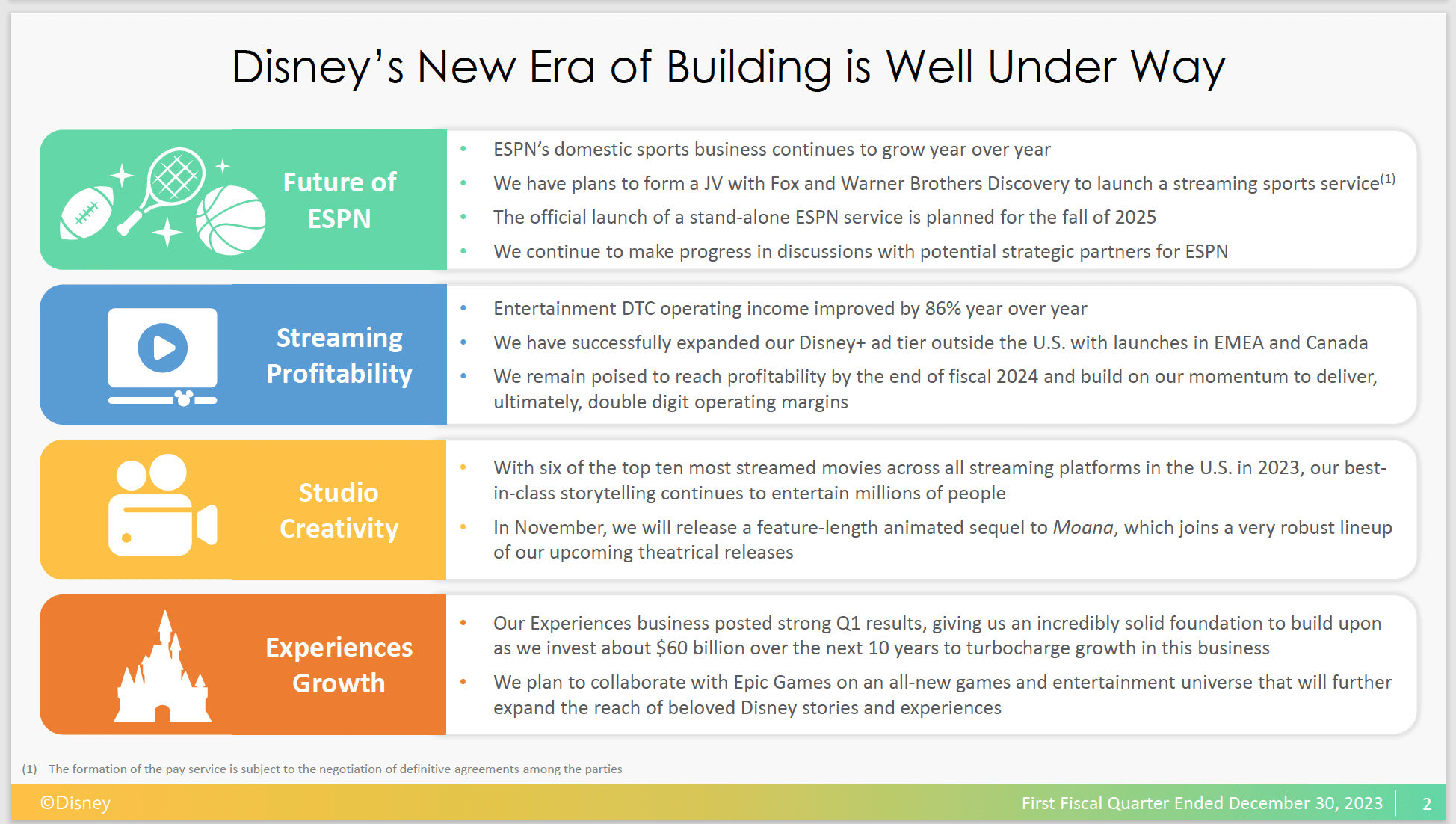Disney Future Projects Underway (Disney First Quarter 2024, Earnings Conference Call Slides)