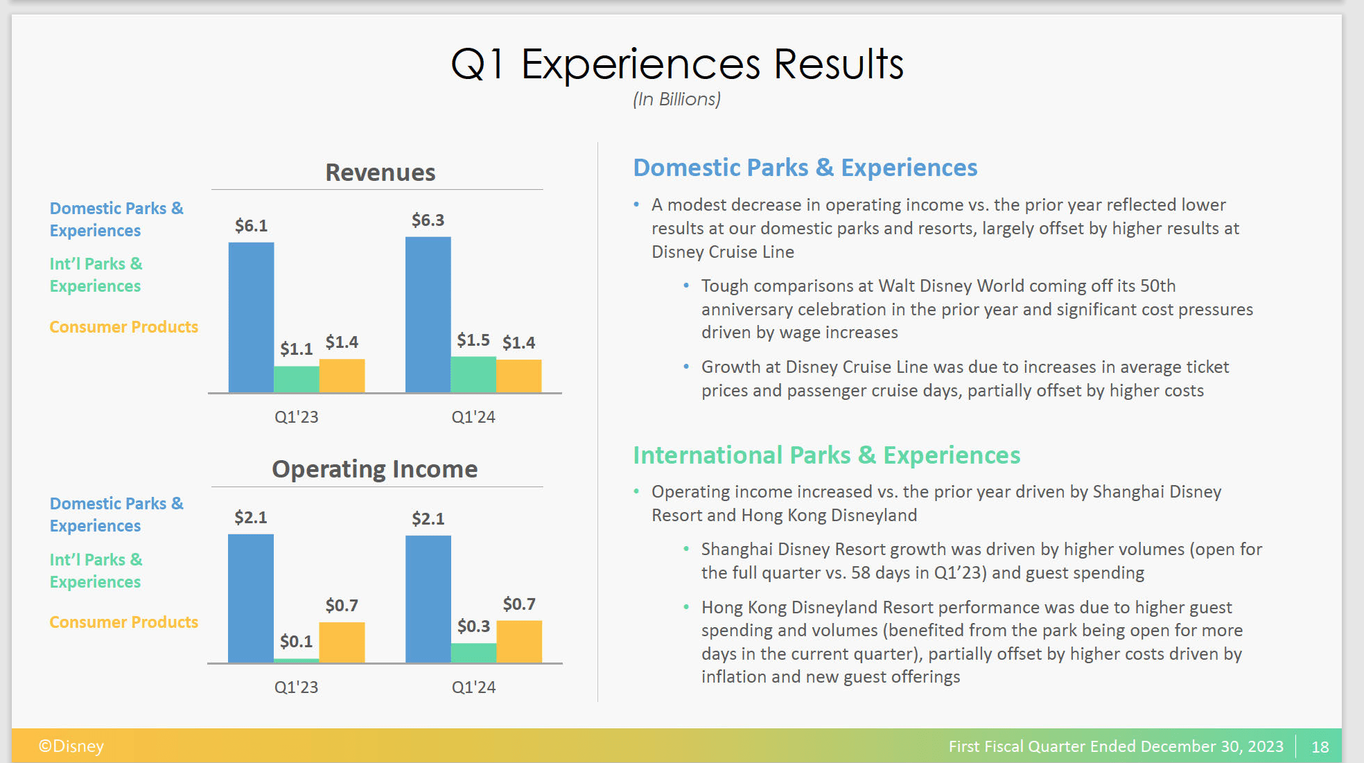 Disney Parks Results Summary (Disney First Quarter 2024, Earnings Conference Call Slides)