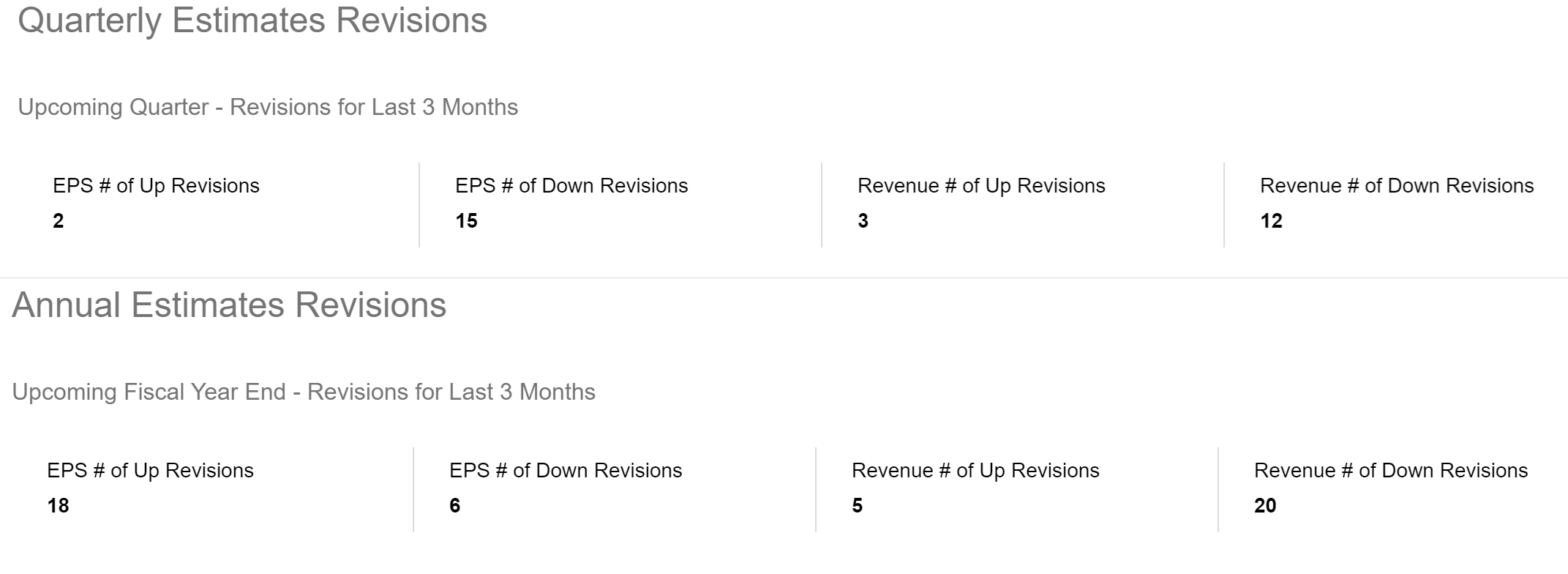 There could be some warning signs that earnings are headed down that lends credence to pessimistic scenarios. When you look at Disney’s earnings revisions for the coming quarter, the number of up revisions is only two for EPS and three for revenues, whereas the number of down revisions is 15 for EPS and 12 for revenues!