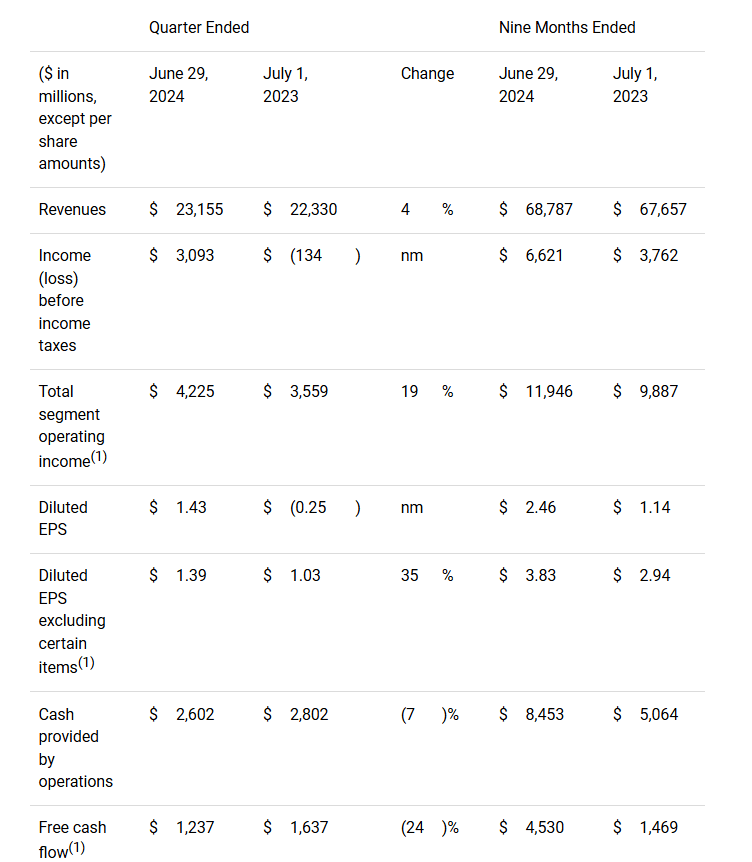 Disney reported strong third quarter results, beating revenue and earnings estimates, driven by profitability in streaming services.