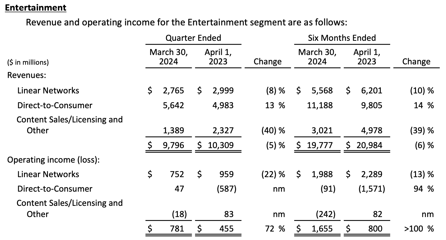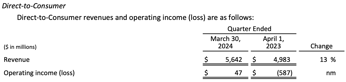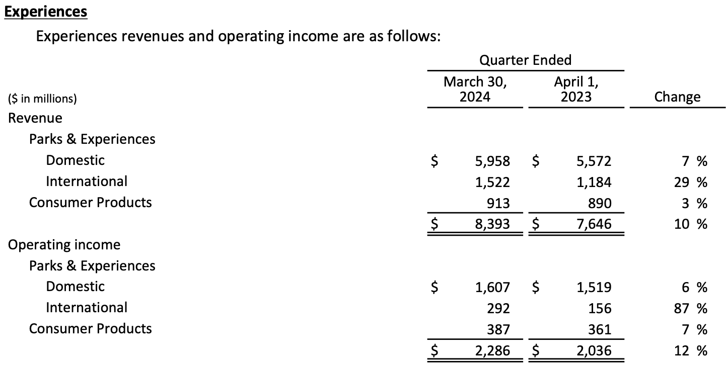 • Multiple successes such as profitable DTC business along with great performance by the experiences division suggest Disney’s core products continue to resonate with consumers.