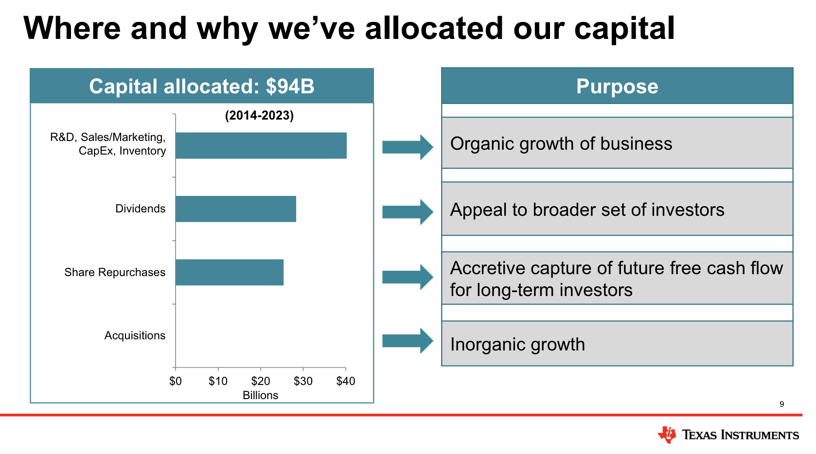 • TXN is a key player in critical supply chains, with a broad product portfolio and strategic investments. It offers steady returns and a solid foundation for future growth.