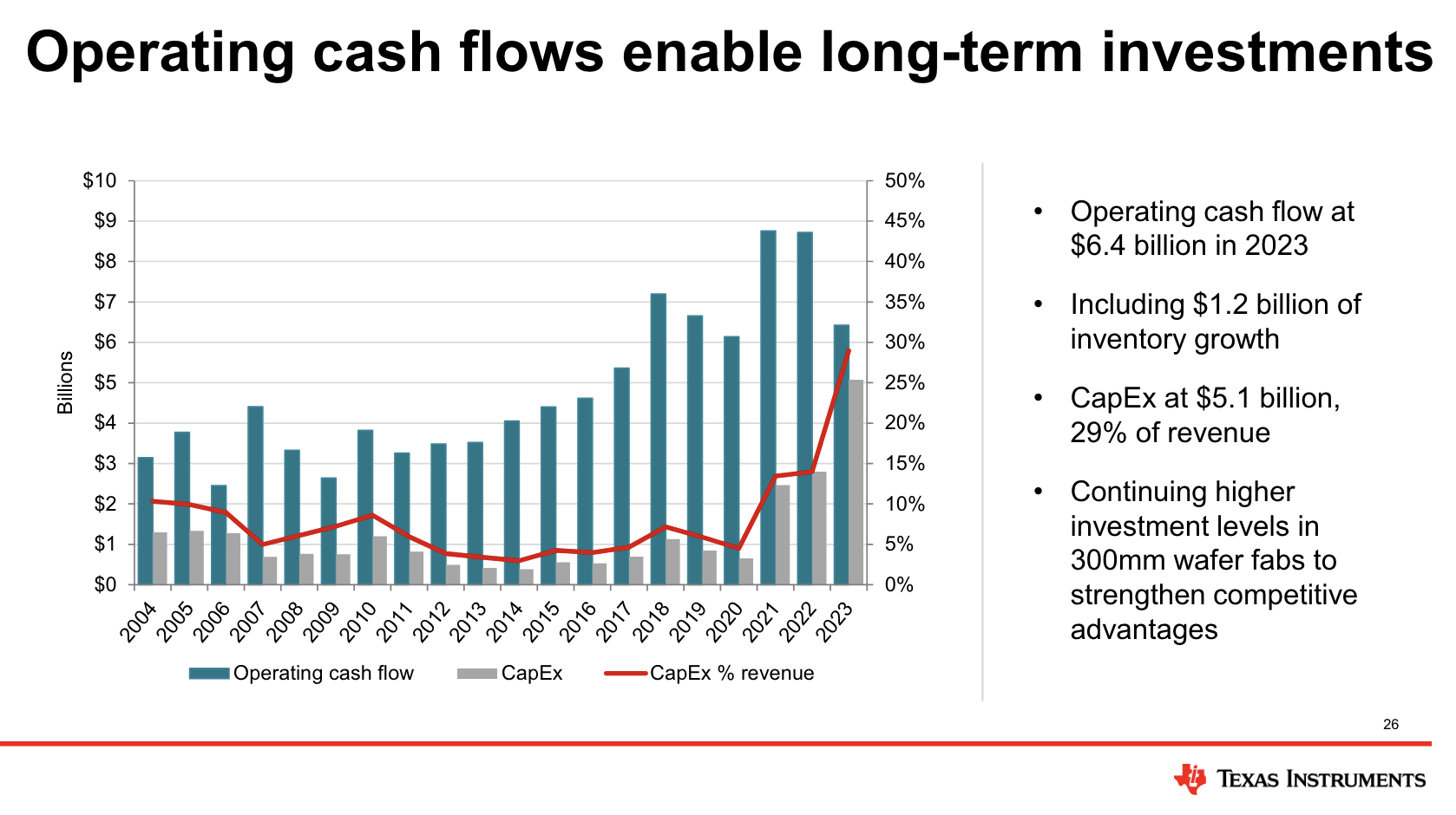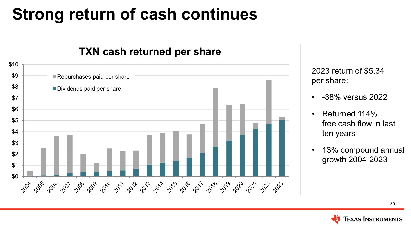 • Industrial growth expectations and inflation pressure are supporting TXN’s future growth.