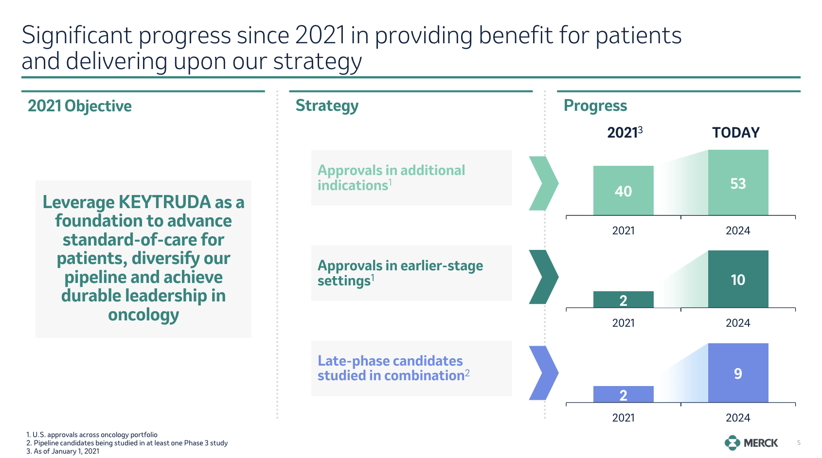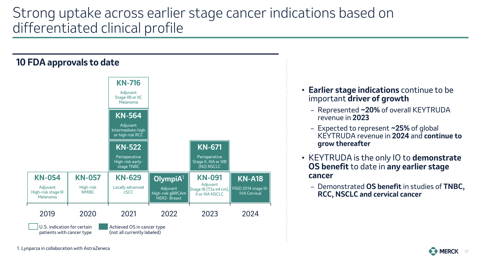 • Merck has significantly increased its oncology portfolio, with Keytruda achieving nine U.S. approvals in earlier-stage cancers.