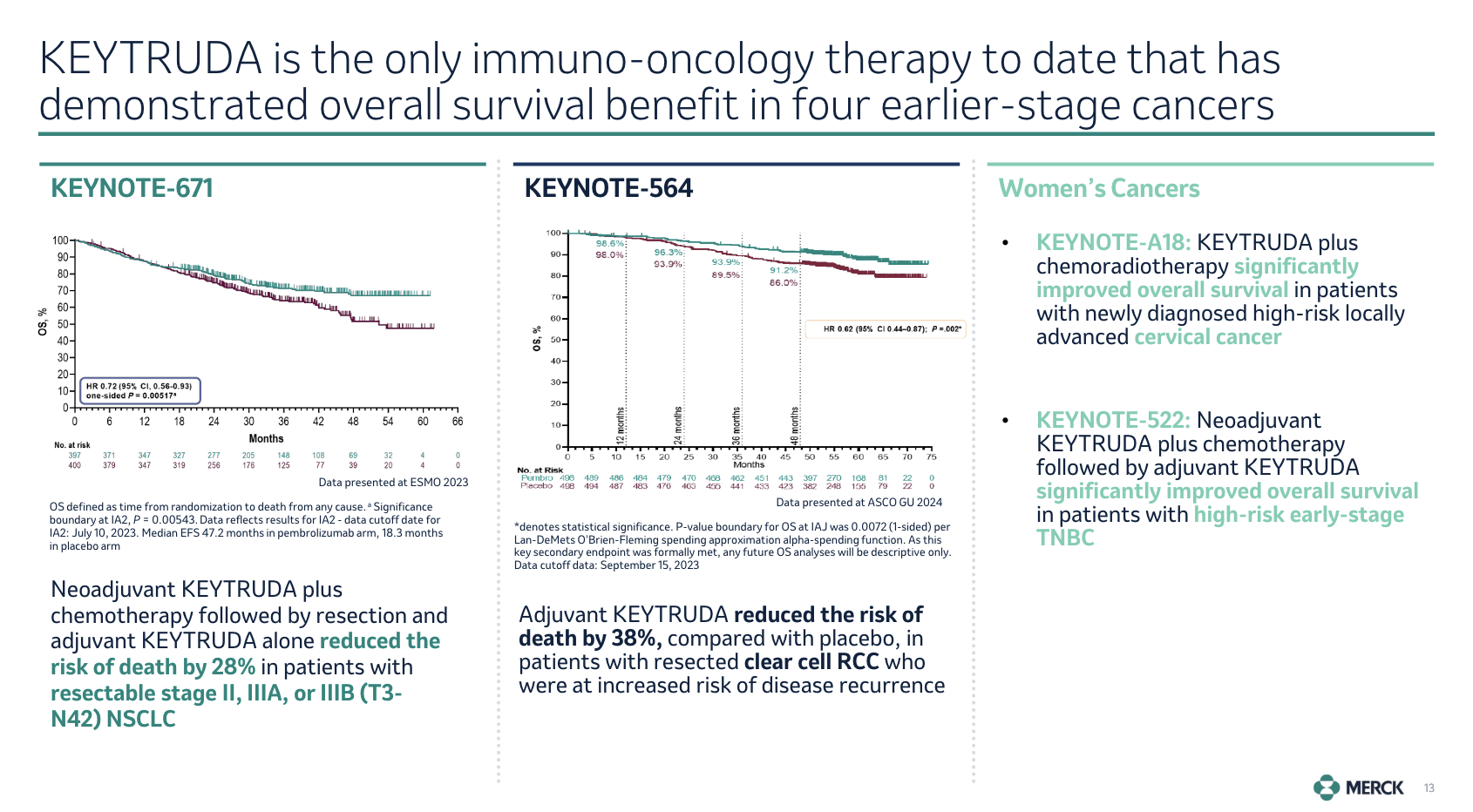 • The company’s phase III trials targeting earlier-stage cancers have shown impressive outcomes, including a reduction in the risk of death for patients with lung and renal cell cancers.