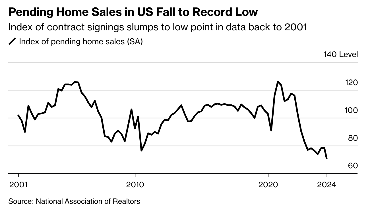 Meanwhile, Bloomberg reported that pending home sales in the U.S. have fallen to a record low on higher rates, likely pressuring prices as well.
