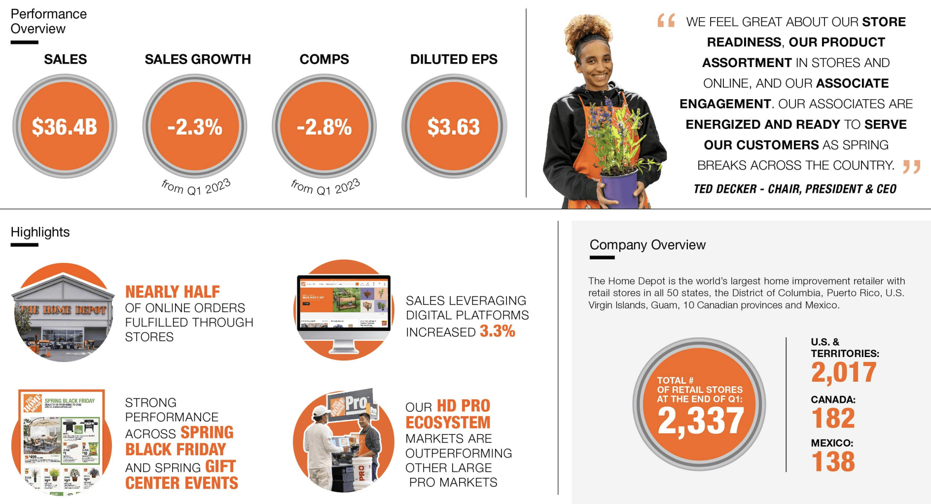 - Growth Opportunities: Investments in pro contractors and the building products market position HD for elevated future growth, especially as the demand for building maintenance increases.