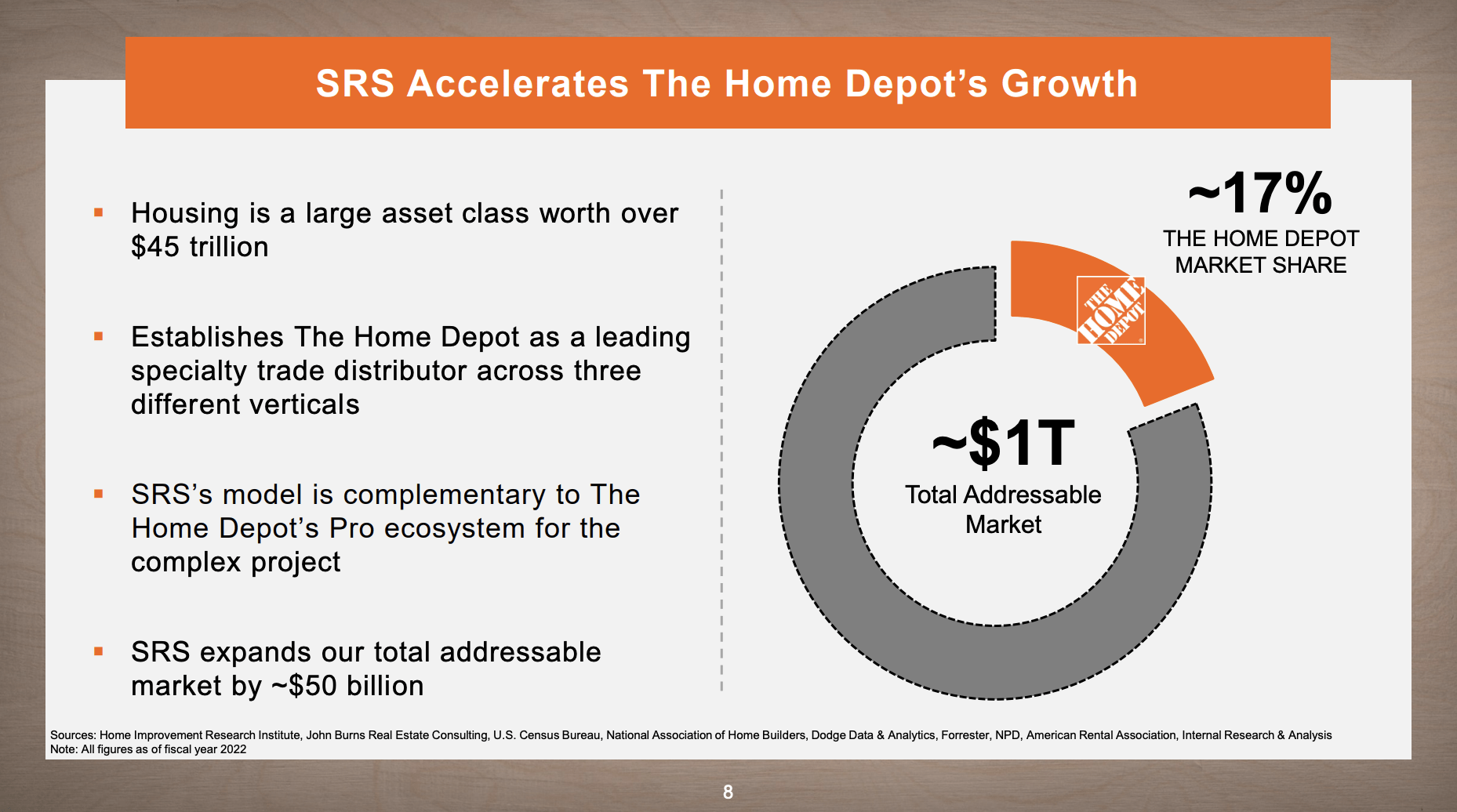 Growth in this area is boosted by the acquisition of SRS, which is a leading specialty trade distributor, which expands its footprint in what is now a $1 trillion addressable market. Home Depot has a 17% market share in this market, which is just a small part of the $45 trillion housing market.
