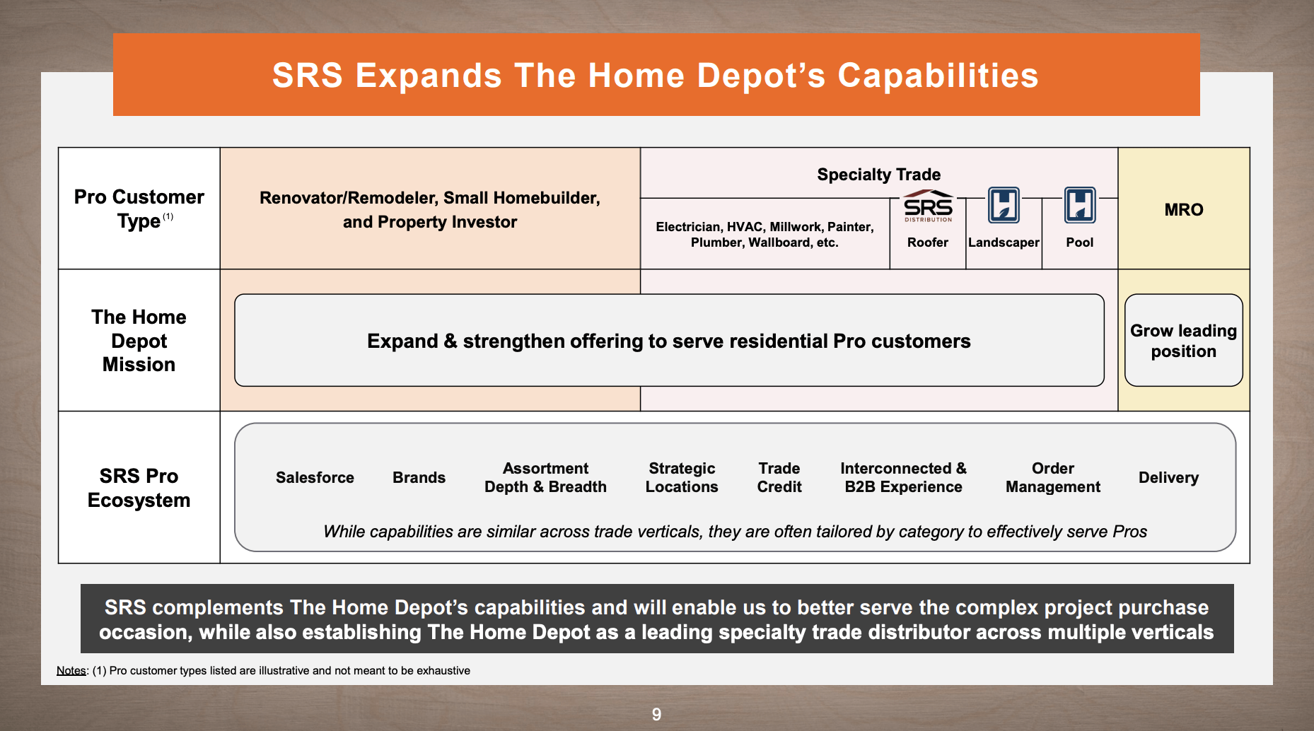 As we can see below, SRS’s specialized capabilities and deep product portfolio complement Home Depot’s existing services/products, allowing the giant to better serve (increasingly) complex project needs.