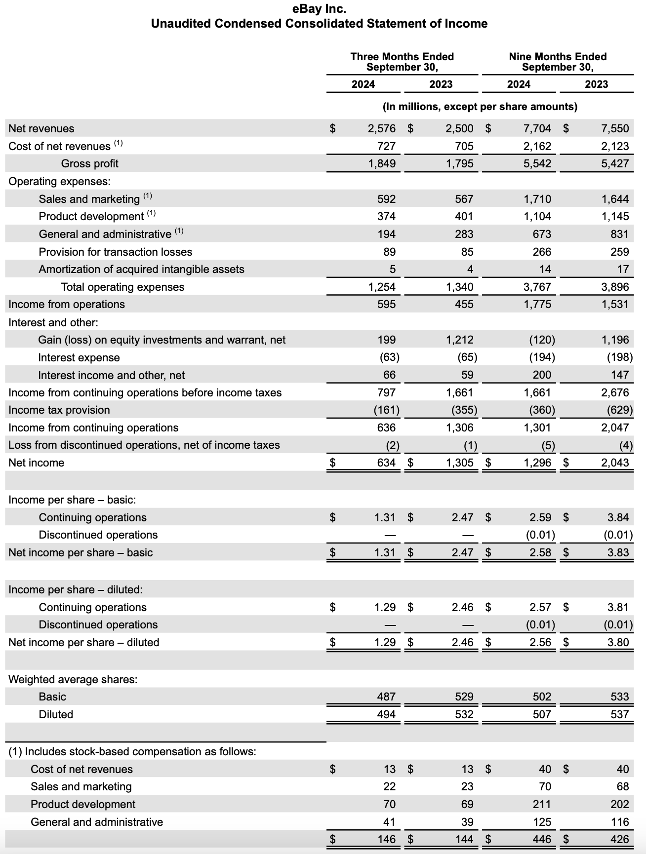 Let’s now go through eBay’s latest quarterly results in greater detail. Take a look at the Q3 earnings summary below: