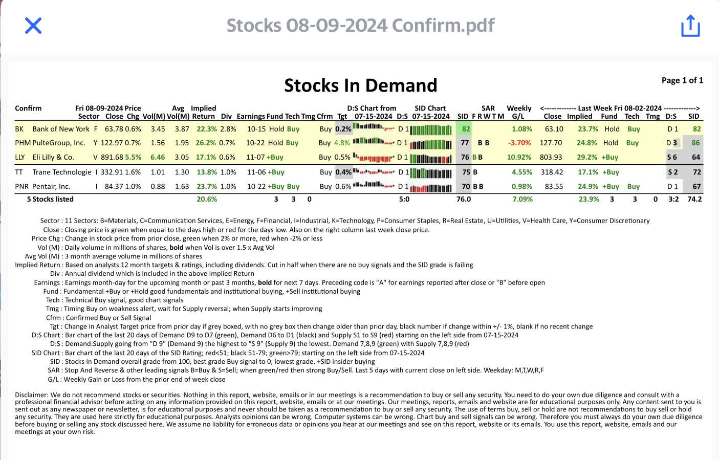 Disclaimer: We are not investment advisers and we never recommend stocks or securities. Nothing on this website, in our reports and emails or in our meetings is a recommendation to buy or sell any security. Options are especially risky and most options expire worthless. You need to do your own due diligence and consult with a professional financial advisor before acting on any information provided on this website or at our meetings. Our meetings and website are for educational purposes only. Any content sent to you is sent out as any newspaper or newsletter, is for educational purposes and never should be taken as a recommendation to buy or sell any security. The use of terms buy, sell or hold are not recommendations to buy sell or hold any security. They are used here strictly for educational purposes. Analysts price targets are educated guesses and can be wrong. Computer systems like ours, using analyst targets therefore can be wrong. Chart buy and sell signals can be wrong and are used by our system which can then be wrong. Therefore you must always do your own due diligence before buying or selling any stock discussed here. Past results may never be repeated again and are no indication of how well our SID score Buy signal will do in the future. We assume no liability for erroneous data or opinions you hear at our meetings and see on this website or its emails and reports. You use this website and our meetings at your own risk