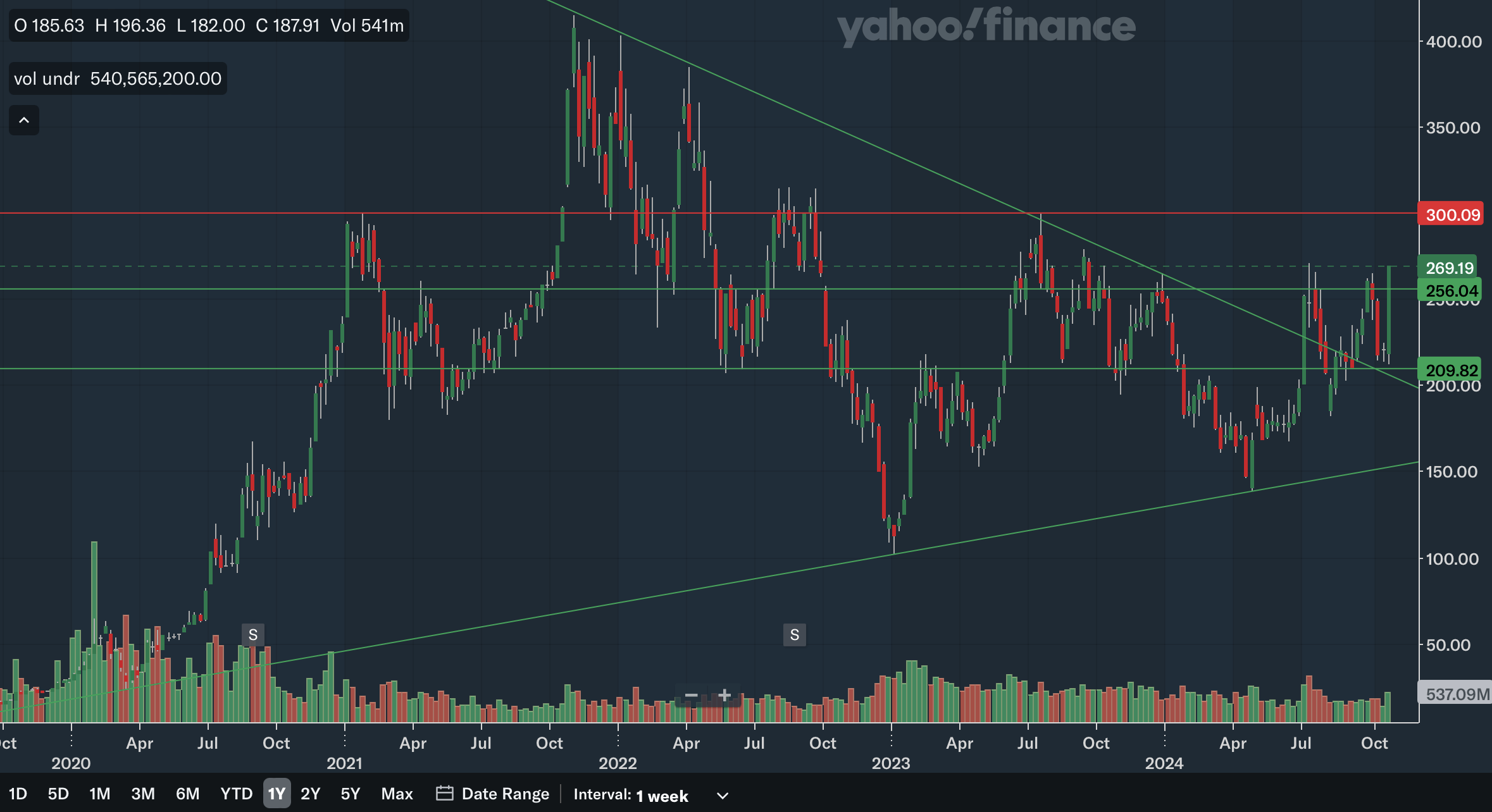 The weekly chart is another positive one for Tesla. The stock has broken out of an intermediate term downtrend very recently and remains in a longer-term uptrend as shown above. The only area of resistance would be at the psychologically important 300 levels as that area has been heavy resistance in 2021, 2022, and 2023. If Tesla extends its bull run, this level could be relevant. The nearest support level, on the other hand, would be in the mid-250s. This level is similar to the one identified in the daily analysis, but here you can see its significance dates back to 2021 and has been both support and resistance. We also have support at around 210 as it also been a key level in the past few years. Lastly, we have the two trend lines. The downtrend line is nearing 200 and is likely to move out of range rapidly, while the uptrend line is distant support. In my view, Tesla’s intermediate term situation is positive as it has once again broken out of a downtrend while there is strong support underneath.