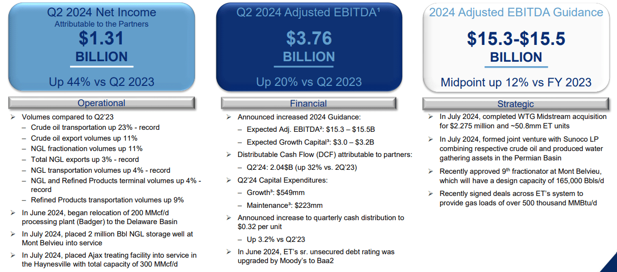 - Energy Transfer is focused on strong growth investments, with $3 billion expected in growth capital for 2024, and is committed to generating strong shareholder returns.