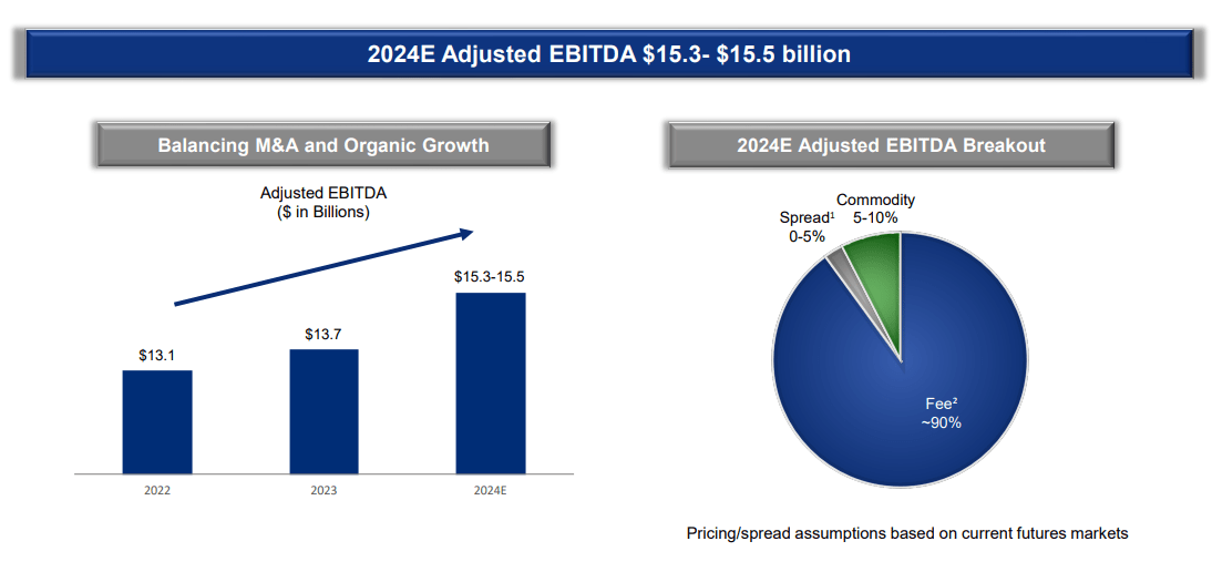 The company is expecting adjusted EBITDA in 2024 of $15.4 billion, and the company’s DCF for the quarter was just over $2 billion. The company has a 16% annualized DCF yield and half of that is a dividend, while the company is spending almost $800 million on capital expenditures. Continued growth investments is something the company can self-fund.