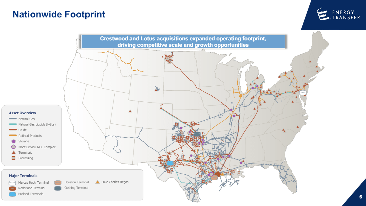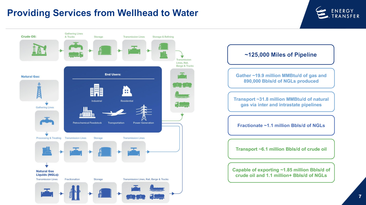 • Energy Transfer is a major player in the pipeline industry, with the largest pipeline capacity of any company.