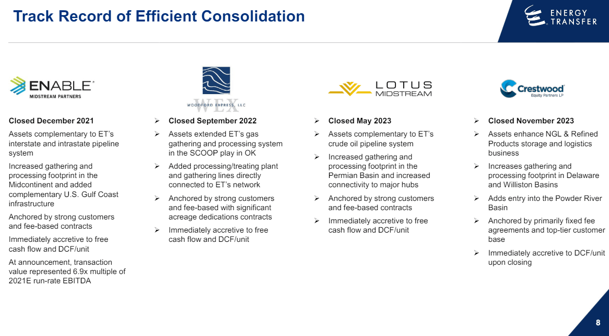 • ET has shown strong growth this year and has potential for future growth through acquisitions.
