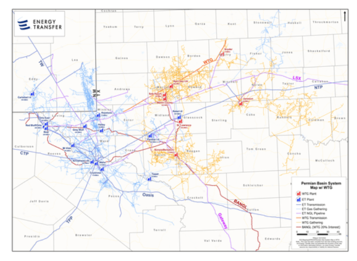 • The recent acquisition of West Texas Gathering (WTG) assets is seen as a positive move for ET, supporting the monetization of the gassier Permian Basin.
