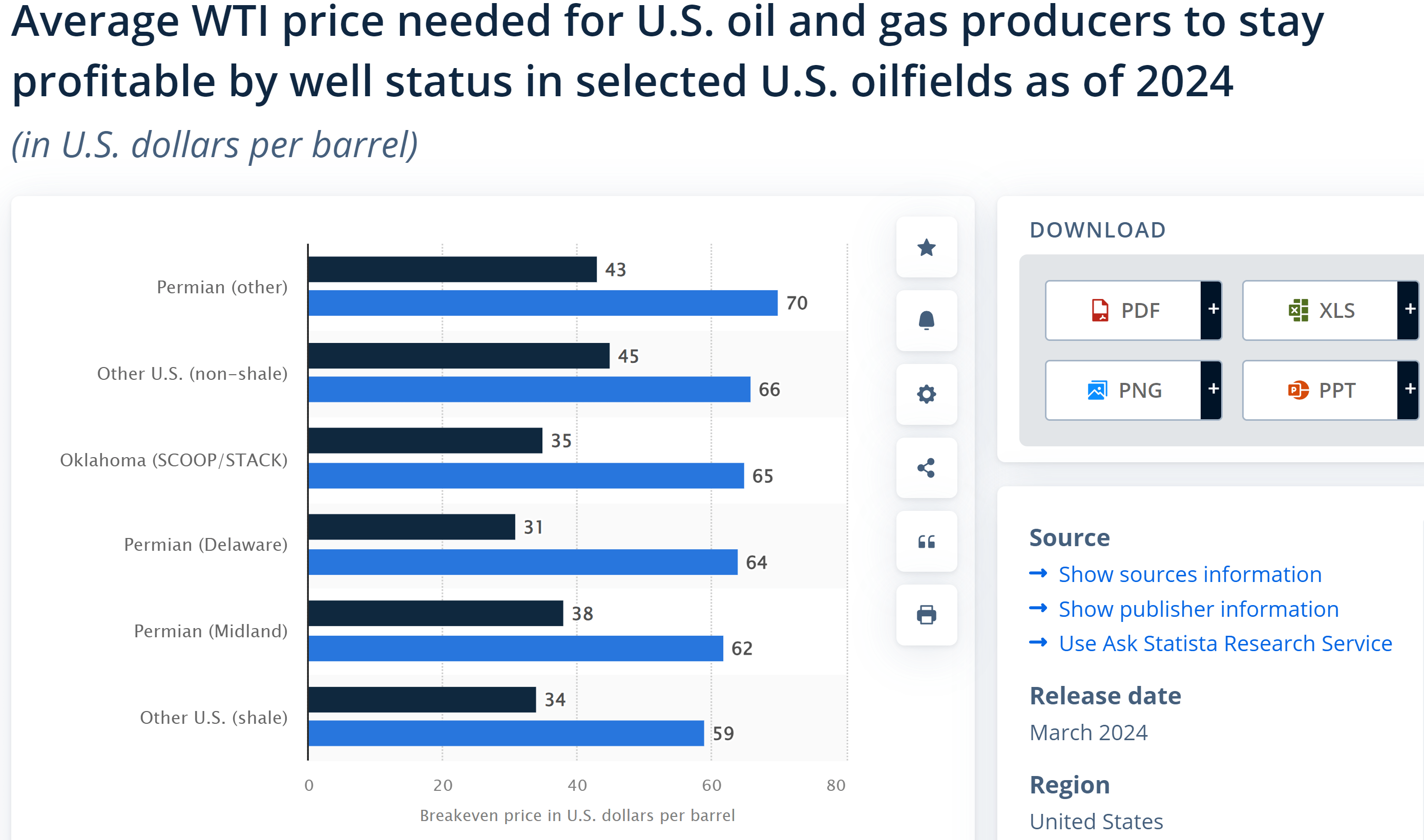 For XOM, it recently closed the purchase of Pioneer Natural Resources. This purchase has already begun to bear fruit on both the top and bottom lines judging by its latest quarterly earnings, as reflected in the record production levels across the Permian area. Together with the ramp-up in Guyana operations, I expected a solid growth trajectory in the next few years. For OXY, it has recently bought CrownRock L.P., also an oil and gas producer based in the Permian Basin. This deal augments OXY’s operation considerably. My estimate for the total price tag for this deal is around $12.5 billion (vs. OXY’s current market cap of around $48B) consisting of about $9.4 billion of cash, the assumption of $1.2 billion of CrownRock’s debt, and about 30 million OXY common shares. To better contextualize the above acquisitions, the Permian basin assets boast some of the most attractive production costs (at least in the U.S.) as you can see from the chart below.