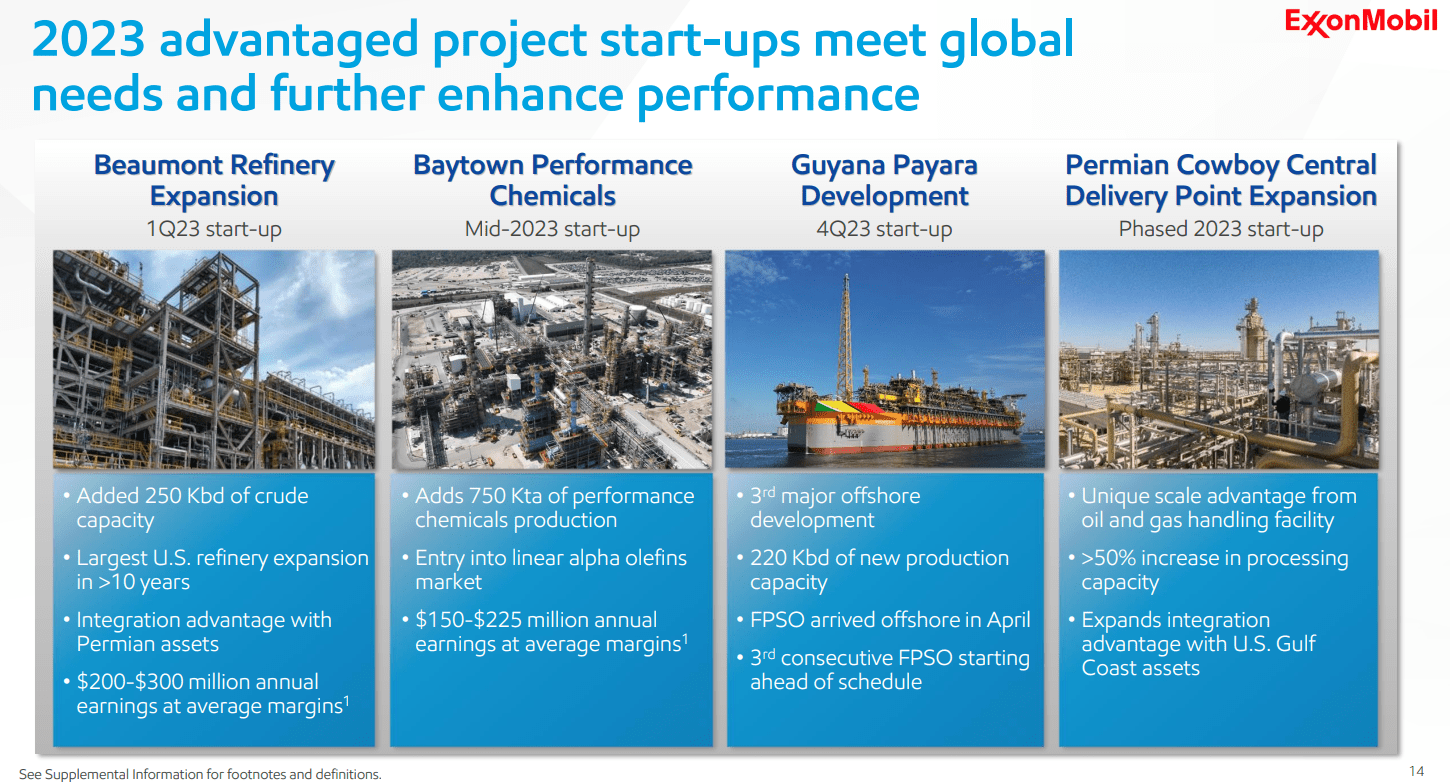 This includes significant expansion projects in upstream within Guyana and the Permian Basin, as well as increased refinery capacity and chemicals production.