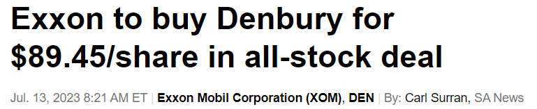 The acquisition is an all-stock transaction valued at $4.9 billion, or $89.45 per share based on ExxonMobil’s closing price on July 12, 2023.