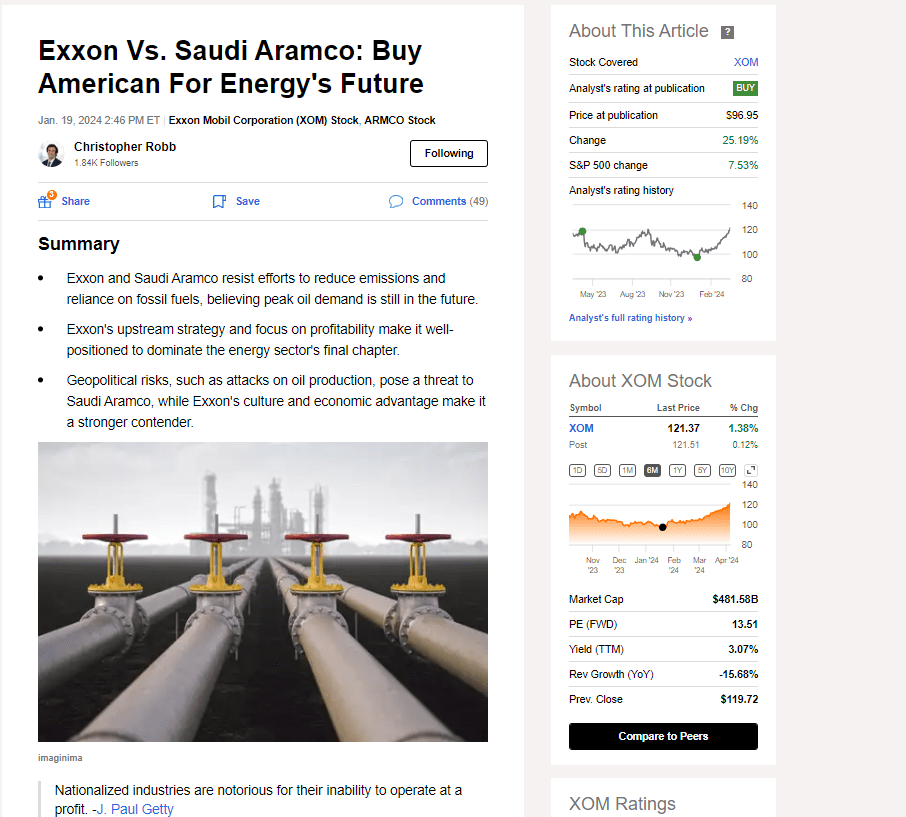 I would say the biggest risk to my bullish disposition on America’s largest Energy company is certainly a recession, which could be caused by any number of things from an unanticipated escalation of multiple geopolitical conflagrations. However, it should also be noted that Exxon may be able to perform quite well compared to international peers, given that its means of production and refinery capacity primarily lie in America, away from the direct physical influences of conflict. This would potentially not be the case for Saudi Aramco in the case of conflict erupting in the Middle East.