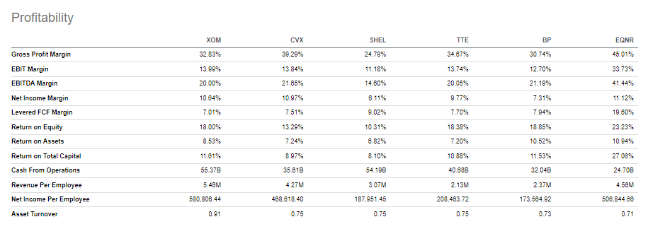 - The company is a massive integrated oil major which gives it natural diversification and the ability to access levels of capital, and scopes of projects that are simply not available to most peers.