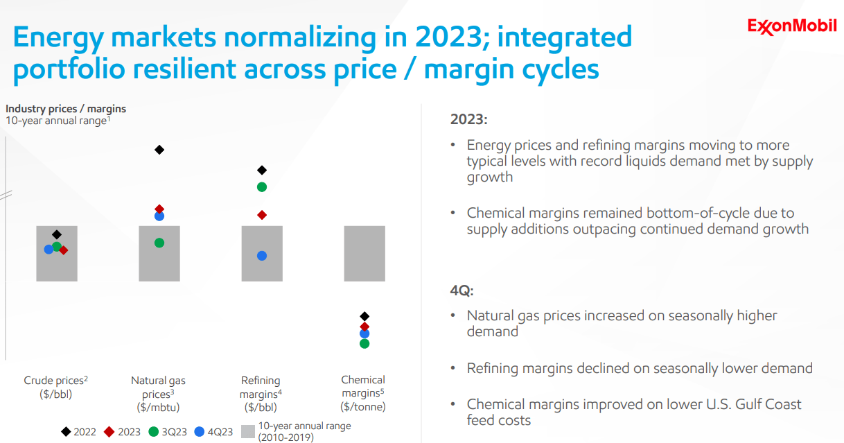 The year 2022 showed what an effective hedge the Energy Industry can be against weakness in key areas of the market. As you can see above, in 2022 Energy provided a very effective hedge and was really the only thing that did well at a sector level in a year where the rest of the market languished. Those who didn’t have a significant Energy allocation in 2022 would have had a very hard time outperforming the benchmark. Exxon also reported diminished expectations for upstream performance in Q1, although I expect this to reverse in short order.