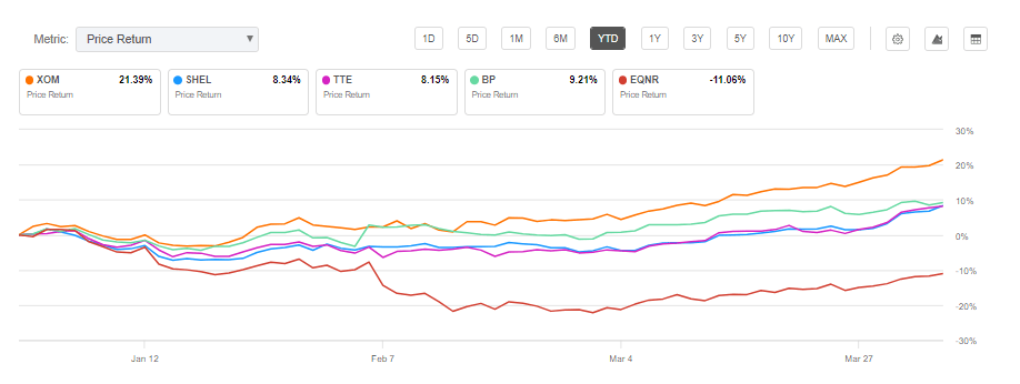 Exxon Mobil Corporation is the titan of the oil industry. I wrote an article a couple of months ago explaining why I thought that the American Energy Titan was slated to dominate the last chapter of the Energy industry. Furthermore, that chapter is likely to be longer than a lot of folks appear to think. The American Energy sector has been showing strength lately, and there are few better companies to own for the long term. Exxon has been up significantly on a YTD basis and has outpaced its large Energy industry peers in the period.