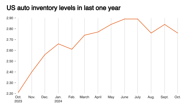 U.S. companies are also dealing with higher-than-usual inventory levels as automakers and dealers deal with changing consumer preferences (slowing demand for EVs and a transition to more affordable compact cars).