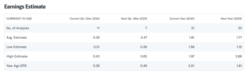 Presently, profit expectations for Ford Motor’s present year are anchored at $1.81 per share, which implies a YoY profit drop of 10%in 2024. Next year earnings expectations are muted as well: The market anticipates a 2% decrease in profits.