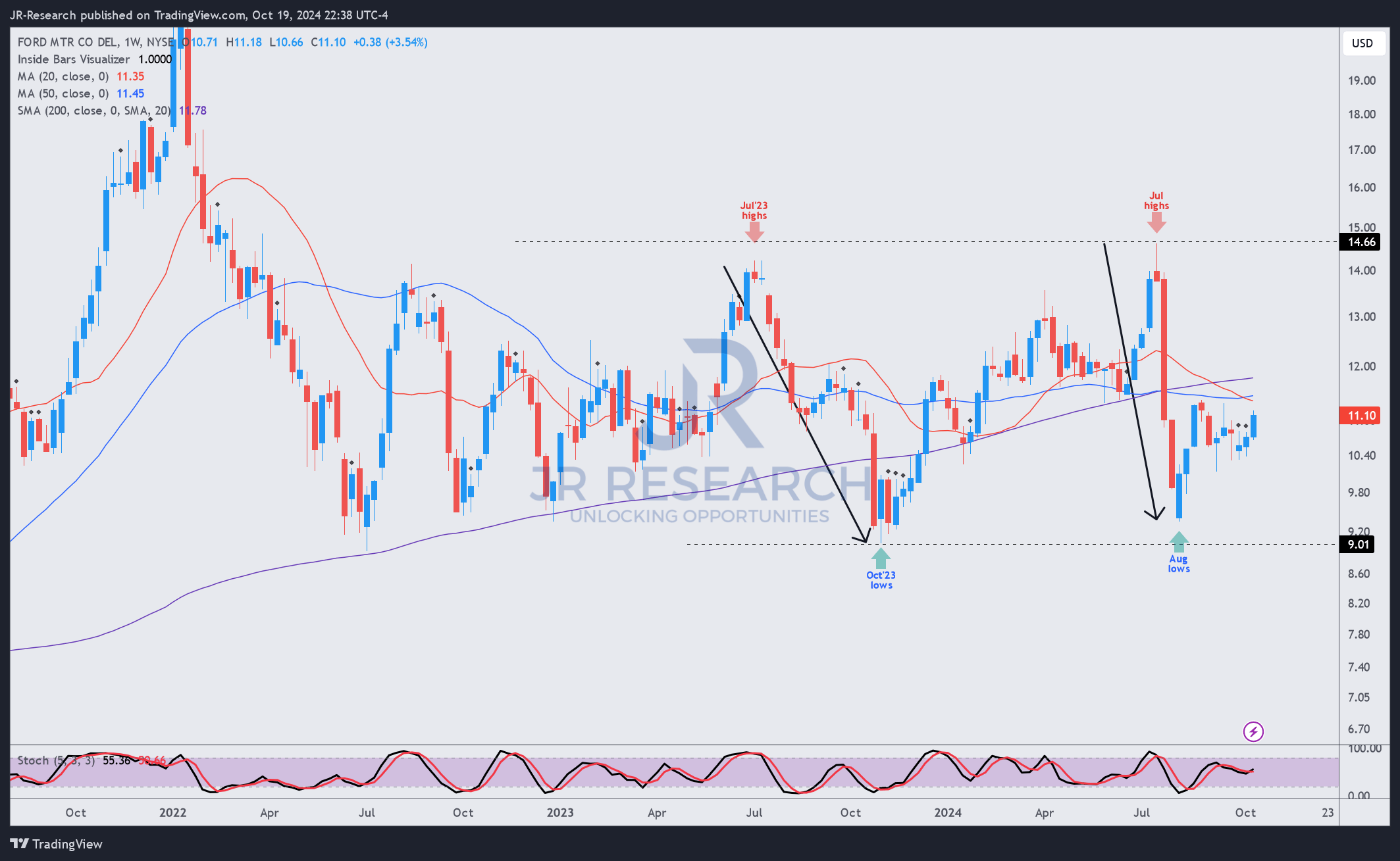 • F has solid dip-buying support above the $9 level, potentially attracting more income investors to return.