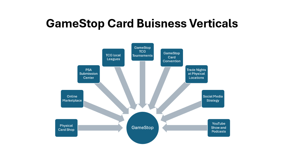 - The trading card market’s growth and synergies with video games offer GME opportunities to host leagues and tournaments and create content, enhancing customer engagement.