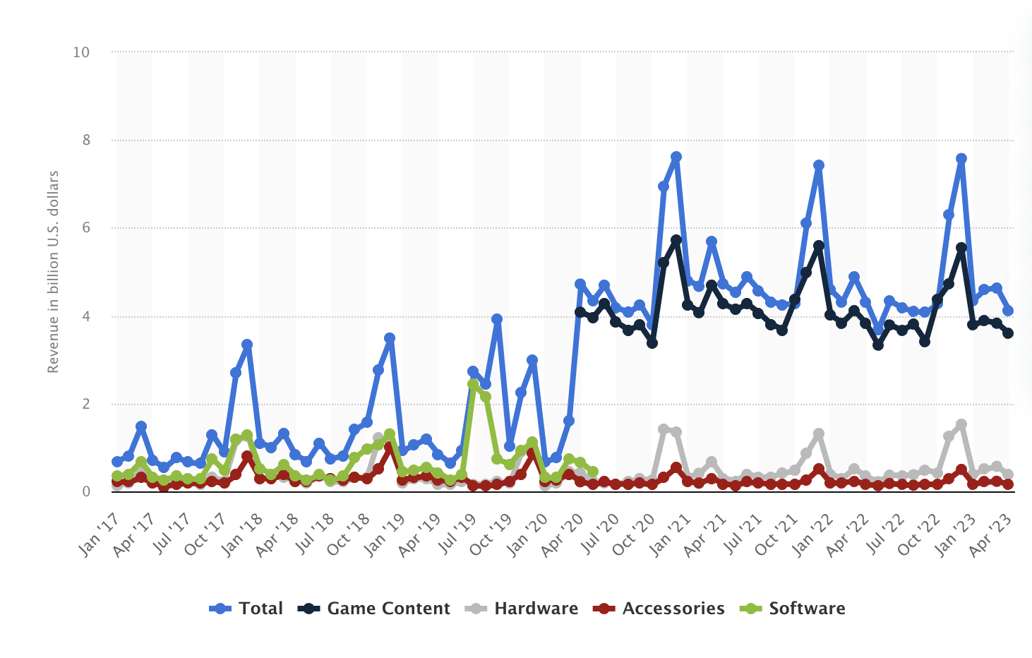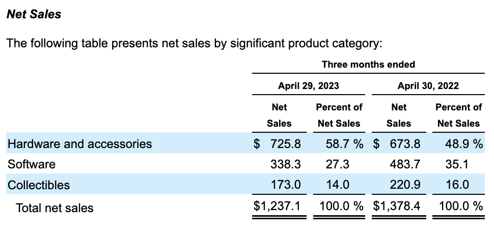 When you dig deeper into the revenue figures provided by management, you do end up with some interesting data points. Not everything for the company was awful. One bright spot happened to be hardware and accessories. Revenue spiked from $673.8 million in the first quarter of 2022 to $725.8 million the same time this year. For those not familiar, hardware and accessories includes both new and pre-owned hardware, accessories, hardware bundles that sometimes consist of software, and other related offerings. Strong demand for new gaming hardware, particularly in Europe, accompanied by improved supply chain conditions, ended up a boon for the company.