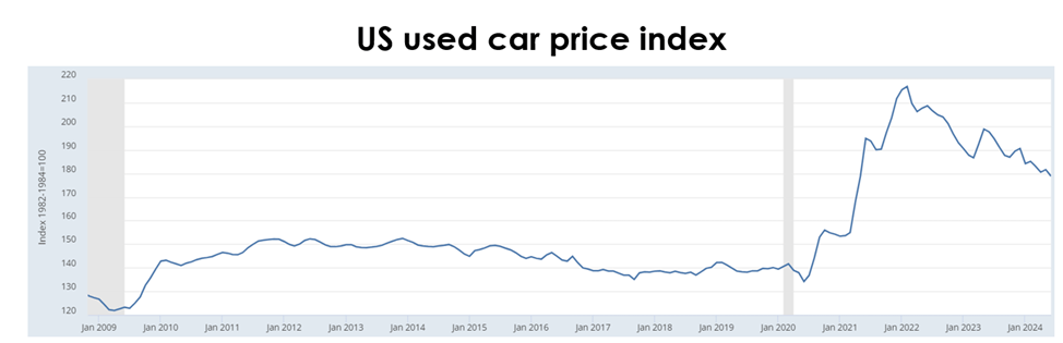 Affordability is increasingly often a problem for US car buyers, as the average annual interest rate on a loan to buy a new car rose to 10%, or by 1 pp from a year before.